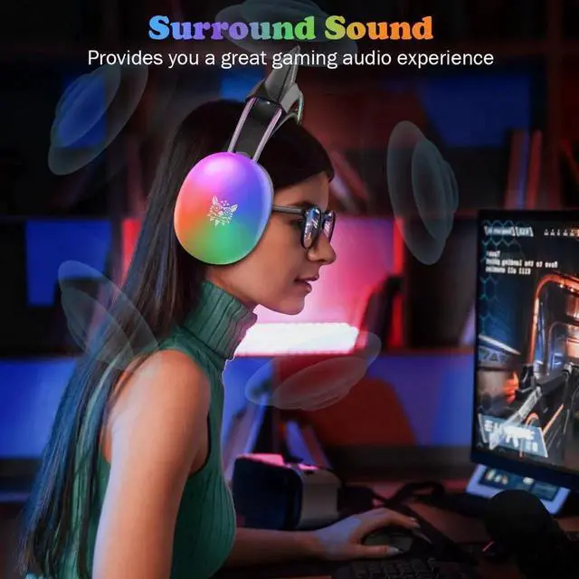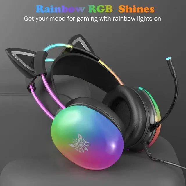 [Rainbow RGB Lighting] Give light to gaming with incredible wired over-ear headphones with rainbow RGB lights! Vibrant & colorful lighting effects boost the game atmosphere, making every session more exciting and engaging.