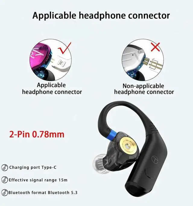Convert wired headphones to wireless headphones:High quality Bluetooth chip converts any dynamic, balanced armature or hybrid earphone into a total wireless Bluetooth solution. Stable yet lightweight, free from dangling wire or tangled cable. Enjoyhigh-fidelity and high-definition sound anytime, anywhere.