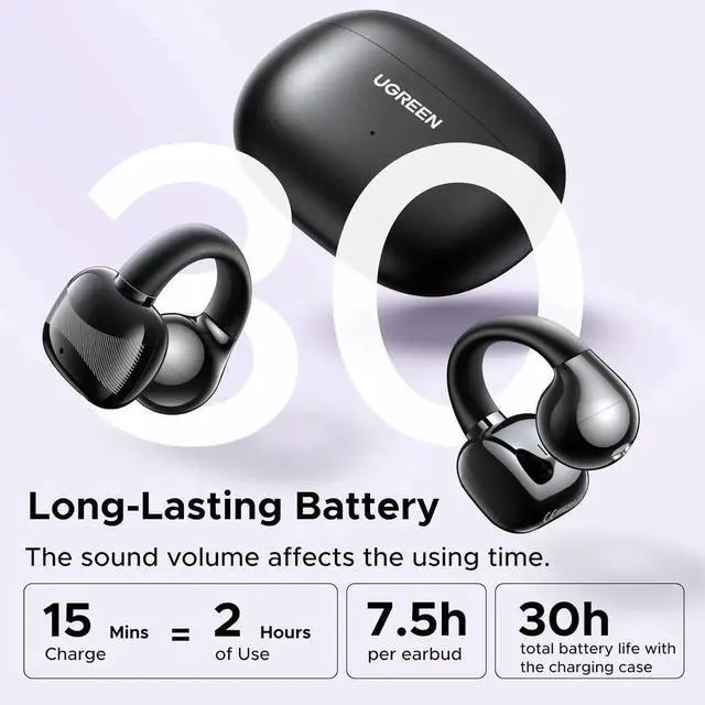 UGREEN Open Ear Wireless Headphones Bluetooth 5.4, 12mm Driver Sports Earphones with ENC, Fast Charging for 30 Hours Playtime, Compatible with iPhone Android and Bluetooth Devices,Suitable for Running