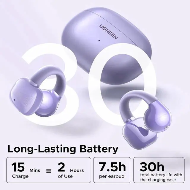 UGREEN Open Ear Wireless Headphones Bluetooth 5.4, 12mm Driver Sports Earphones with ENC, Fast Charging for 30 Hours Playtime, Compatible with iPhone Android and Bluetooth Devices,Suitable for Running