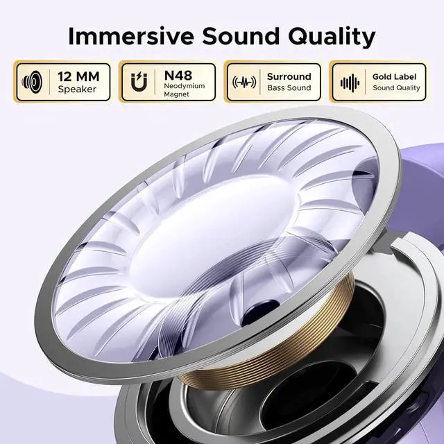 Surround Stereo Sound: Bluetooth headphones with 12mm speakers and composite diaphragms deliver powerful bass and clear mids. These headphones are designed for sound and music lovers. It can support dual-device connection mode and achieve seamless switching between two devices. Each earbud has a built-in microphone for phone calls. ENC noise reduction can make others hear your voice very clearly.