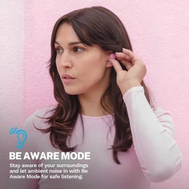 • Be Aware Mode: Stay aware of your surroundings with ambient noise let in for safe listening.