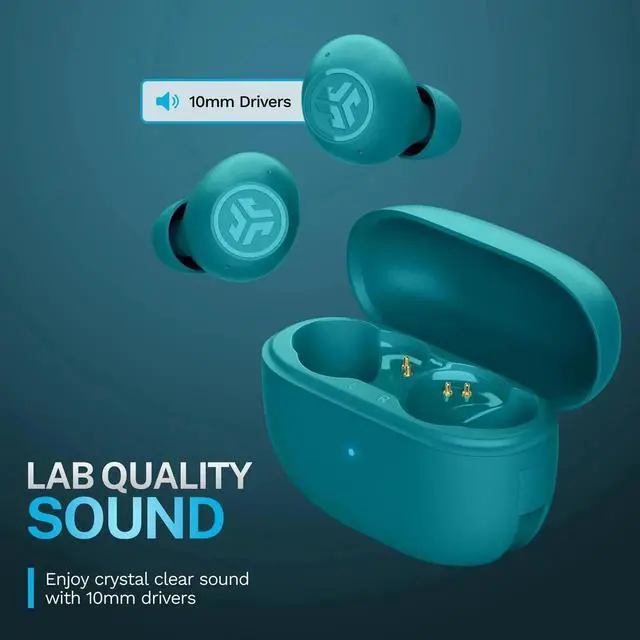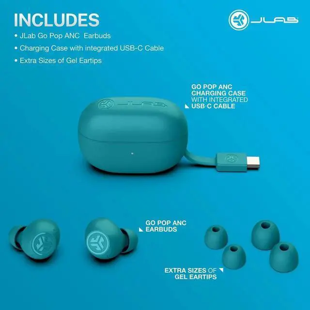 JLab GO Pop Active Noise Cancelling True Wireless Earbuds, Charging Case, Teal
