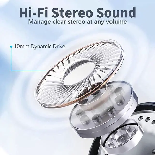 Superior Clear Call & Immersive Stereo Sound: Feature a 10mm speaker that delivers stunning treble and clear mids. CVC noise reduction ensures that your voice comes through crystal clear, create a stable and clear communication environment.