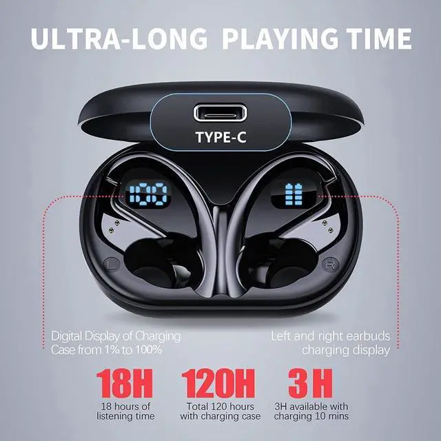 120 Hours Play Time & LED Charging Case: Wireless headphones give you 18 hours of listening time on a single charge. With a combination of USB-C quick-charge and 5-6 full charges from the charging case, you can enjoy extended battery life for up to 120 hours.