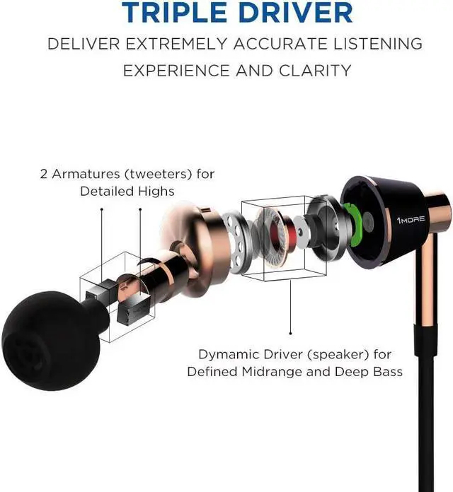Three Drivers- These Headphones Have Two Balanced Armatures And A Separate Dynamic Driver. Together They Deliver An Extremely Accurate Listening Experience With Unsurpassed Dynamic Power And Clarity From Deep Bass To Sizzling Highs