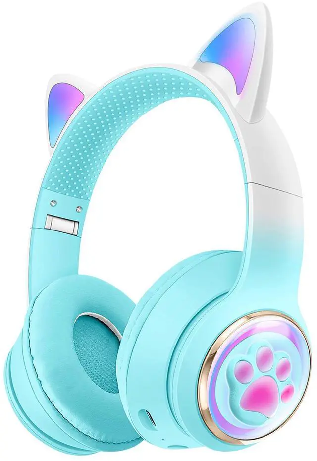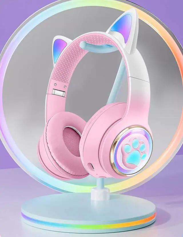 Cute Cat Ear Bluetooth Headset LED Light, Space Capsule, Wireless, Heavy Bass for Gaming AKZ 62 - black