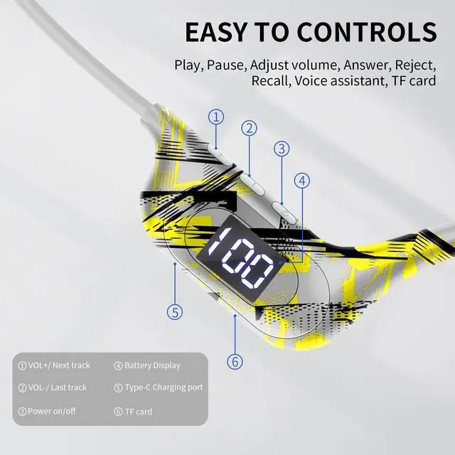 Features: Stereo Bluetooth music playback, external TF card slot, bone conduction