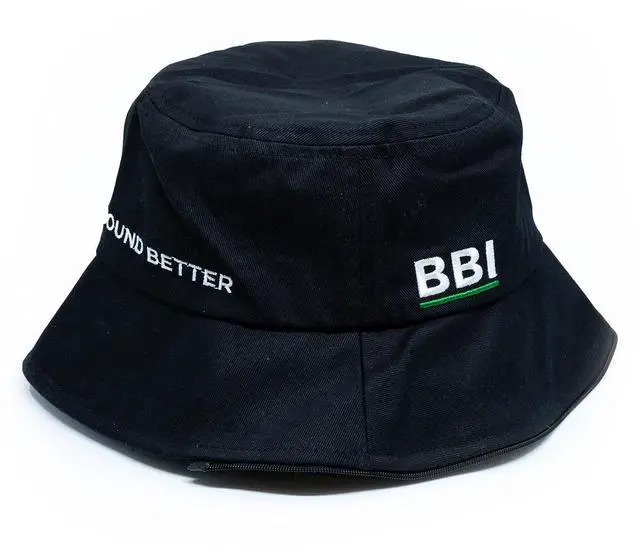 Our 100% Cotton 'bucket'-style hat with face visor uses a zipper to attach or remove a clear face shield for safety when working on set. Suitable for indoor or outdoor use when it's necessary to shield the wearer's face from spray, splatter, droplets, dust, etc. The cap is black with an embroidered 'BBI' logo on the front panel and the phrase, "MAKING SOUND SOUND BETTER" along the back. Benefit from the increased protection of the large face shield included. Suggested for use with In-Ear Monitors. Features100% Cotton, Perfect FitOur hat is made of quality grade 100% cotton material, with an adjustable ribbon hidden under the sweatband on the inside for a perfect fit.