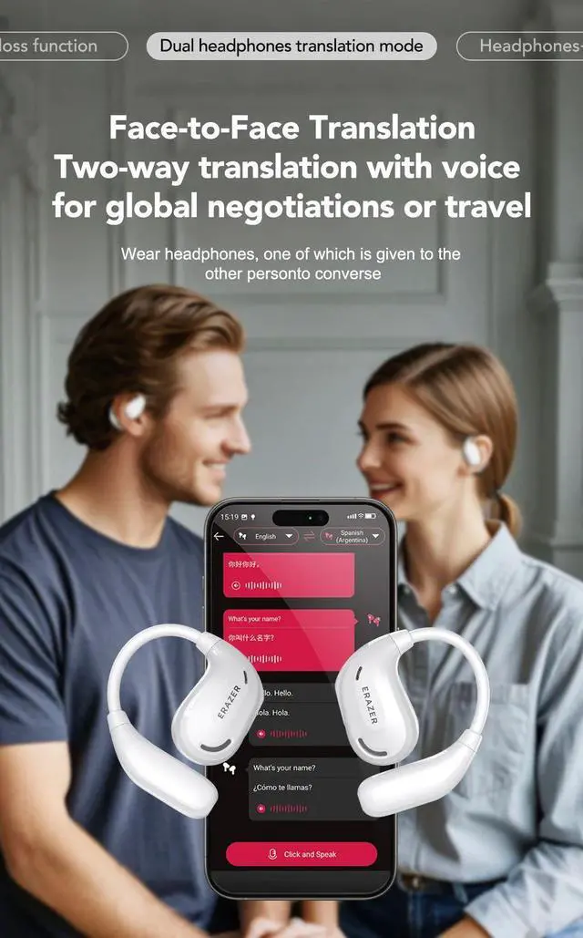 Erazer XT66 Intelligent Translator Earphone Wireless Headpho