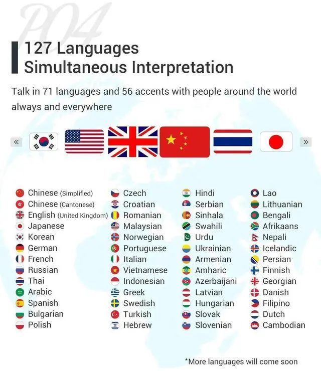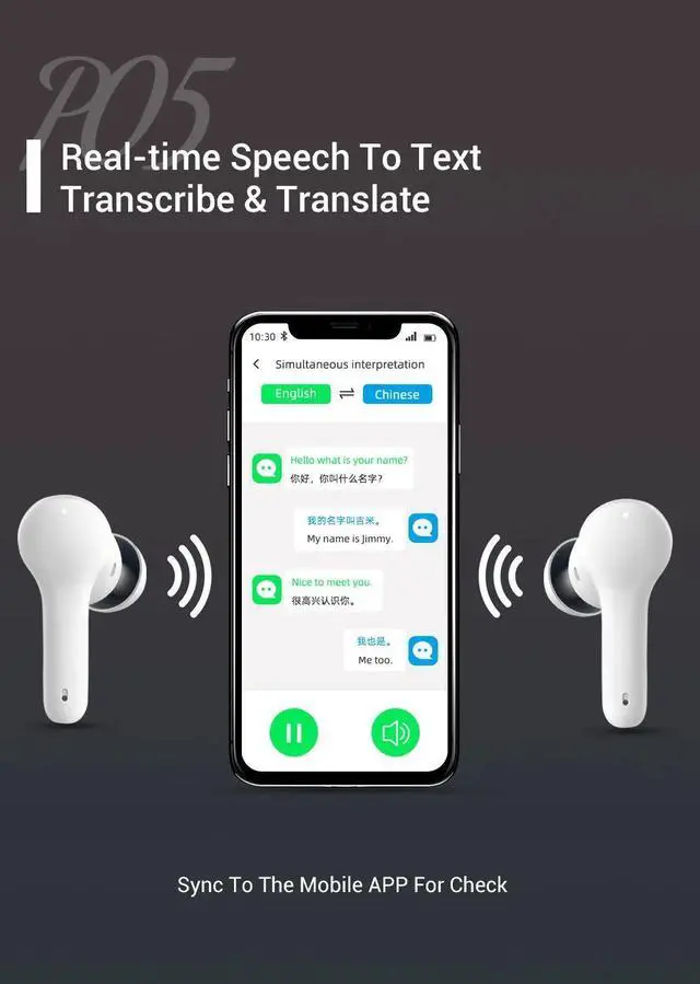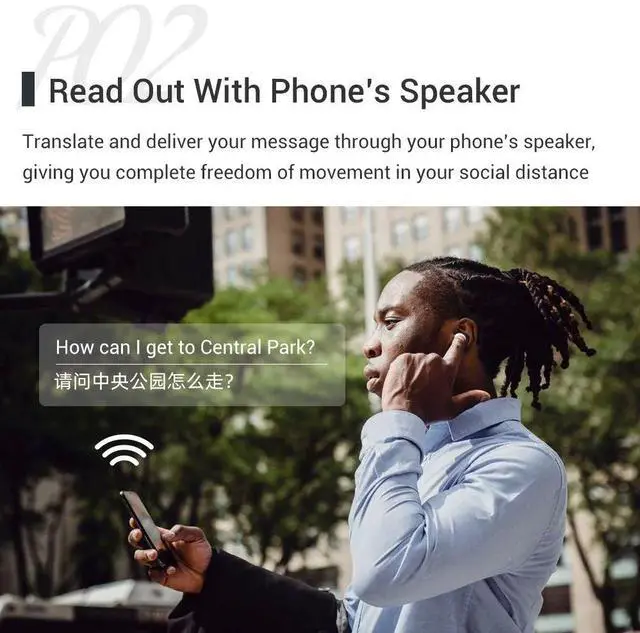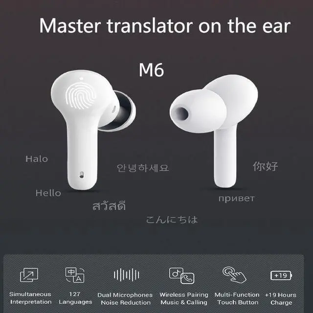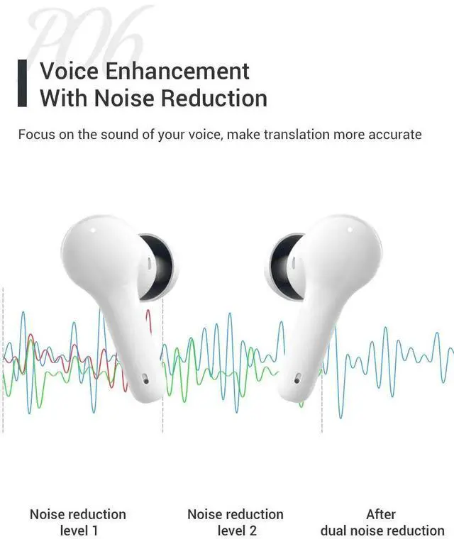 1. The earbuds realize 2-way real-time translation up to 97%accuracy in71 languages,56 accents online and 9 languages(Chinese, English,Japanese, Korean,France, Spain, Russian, German, Arabic)offline.