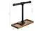 Tabletop standing dual headset cradle with black metal pipe T-bar hanger and premium acacia solid wood base stores over-ear headphones rustic style **Some assembly required**