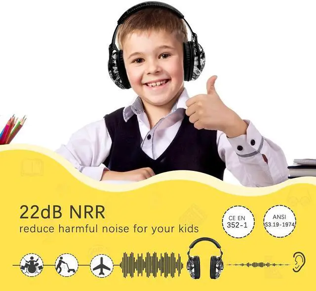 Efficient Noise Reduction: Design for children who have sensory issues and need extra hearing protection. The NRR is 22dB that means they could reduce noise levels enough for your child not to be disturbed.It is suitable for watching fireworks, air shows, concerts, and sports without being affected by high noise