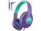 Rockpapa C24 Kids Headphones with Microphone, Foldable Wired Headphones with 3.5 mm Jack for Boys & Girls, School Travel Purple & Green