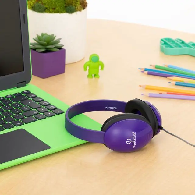 The Egghead (r) Heavy-Duty Kids' Headphone is designed for durability and comfort, making it an ideal choice for young users. Featuring a tough plastic casing, these headphones can withstand heavy use in classrooms or at home. The colorful units are equipped with soft, padded ear cushions and an adjustable headband, ensuring a comfortable fit for extended listening sessions. The four-foot Tri-Shield cord is chew-resistant, kink-resistant, and knot-resistant, designed to endure rough handling and prevent tangling. The 3.5 mm, 120deg slim barrel plug offers a secure audio connection, even with devices that have thick protective cases, reducing the risk of accidental breakage.