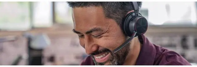 The Voyager Focus 2 is designed with you in mind - stay focused and productive all day. Crystal clear conversations It's you - loud and clear. That's all callers hear. The discreet microphone boom is not only ultra-noise canceling but, with its Acoustic Fence technology, literally creates a virtual noise-free bubble in front of your mouth. Feature ^^ Immersive experienceStay focused while on calls or listening to music/media with stereo sound. Easy to use An easy-to-use headset with smart sensors for answering/muting calls and playing/pausing music. The intelligent microphone boom automatically maintains left and right audio no matter which side the headset is worn on.
