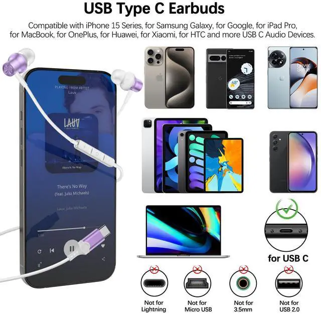 Widely Compatibility: COOYA USB C Earphone for iPhone 16 Pro Max/16 Plus/16 Pro/16/16e/15 Pro Max/15 Plus,for Samsung Galaxy S25 Ultra/S25+/S25/S24 Ultra/S24+/S23+/S23 Ultra/S22+/S22 Ultra/S21 S23 FE/S21+/S20 Ultra/Z Flip/Fold6 5/A16/A26/A36/A56/A35/A55/A54/Tab S9 Ultra/S8+, for Google Pixel 9 Pro XL 8 7 6 Pro,for OnePlus 13/13R/12/12R/Open/11/10T/9 10 Pro,for iPad 10 11/Pro 2024,for iPad Air 6/4/5th/Mini 6 7,for Macbook Air/Pro 13" 15" 16",for Motorola,for Nothing Phone more USB C devices