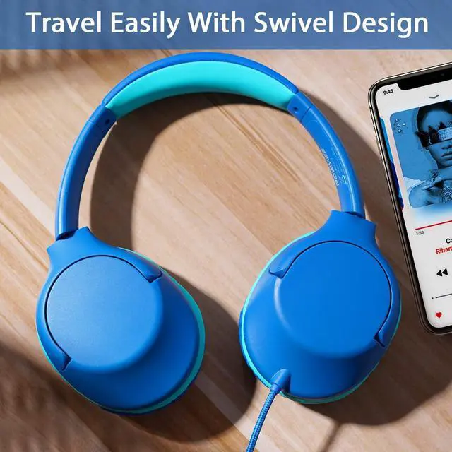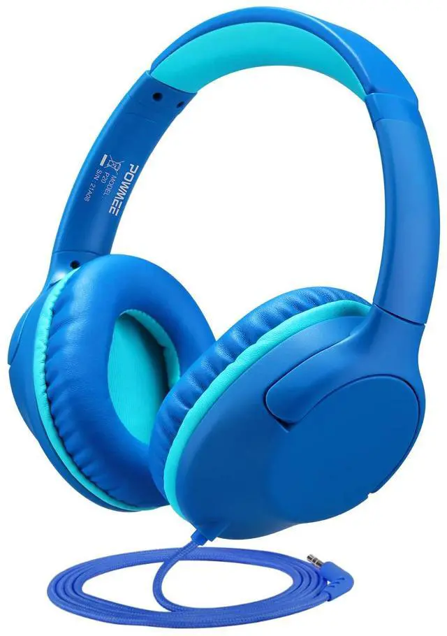 POWMEE P20 Kids Headphones for School, Kids/Teens/Boys/Girls with Safe 94dB Volume Limited, 3.5 mm Jack Wired Cord Over-Ear for Fire Tablets/Travel/PC/Phones (Blue)