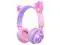 Riwbox Kids Headphones, CT-7S Cat Ear Bluetooth Headphones with LED Light, 85dB Volume Limiting, Over Ear with Microphone for Laptop/PC/TV (Pink&Purple)