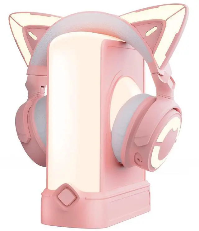 Enhance your ambience of the room with this bundle that includes the YOWU RGB Pink Cat Ear Headphones 4 and a stylish crystal headphone stand. Enjoy the immersive sound and customizable RGB lights of the headphones, while the stand keeps them safe and organized. Perfect for gamers and music lovers alike.