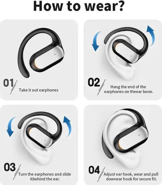 The open ear bluetooth headphones are designed to sit around your ear, leaving the inner ear open for a comfortable and secure fit. Constructed from ultra-lightweight and skin-friendly materials, weighing only 9g, you can wear them for extended periods without any discomfort. Say goodbye to ear fatigue and enjoy a sensation-free wearing experience all day long