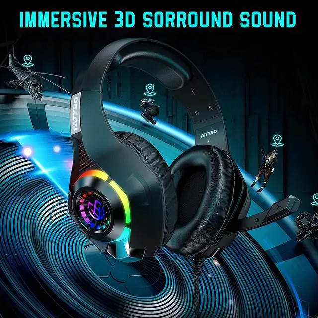 This gaming headset have high-density audio driver carries higher definition and stronger frequency sound, the resonant bass provides an all-round listening experience, and the stereo surround shows the game sound effect, and you feel that you are the protagonist of the game! Protein leather memory foam, enlarged ear cups to fully wrap your ears, padded and retractable headband to fit your head perfectly, during long gaming sessions Also feel comfortable and more immersed in the game. Leading noise-reducing tech promises crystal-clear communication with your teammates. This gaming headset with mic effectively suppresses background noise and elevates your voice. Tatybo gaming headsets aim to made for all-platform audio-visual entertainment.