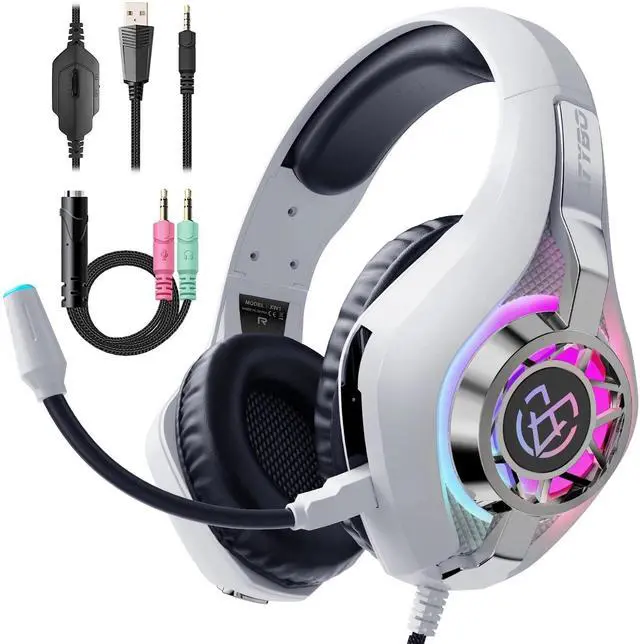 - Excellent Durable Gaming HeadsetAdjustable stainless steel headband, durable shell, braided cable and other materials have been tested for durability thousands of times, so you don't have to pay for any carelessness like falling, dragging, twisting, etc. The RGB lights are full of futuristic technology and enhance the gaming atmosphere.