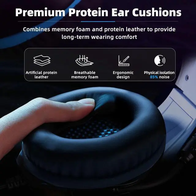 - Design for All-Day ComfortOnly 8 ounces weight, protein leather memory foam, enlarged ear cups to fully wrap your ears, padded and retractable headband to fit your head perfectly, during long gaming sessions Also feel comfortable and more immersed in the game.