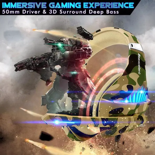 - Camouflage Design StyleCool camouflage appearance, let your gaming headset stand out. When playing games in certain specific scenes, you feel that you are in the world of games. It is very suitable for FPS games like Cyberpunk 2077, Call of Duty, CS: go, Halo 5 Guardians, etc.
