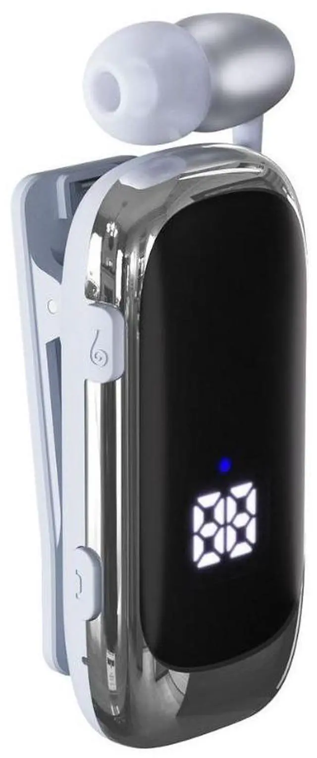K88 Retractable Reel Clip-On Bluetooth Headset Business & Sports, 20H Playtime, 5.4V, LED Display, Vibration Alert