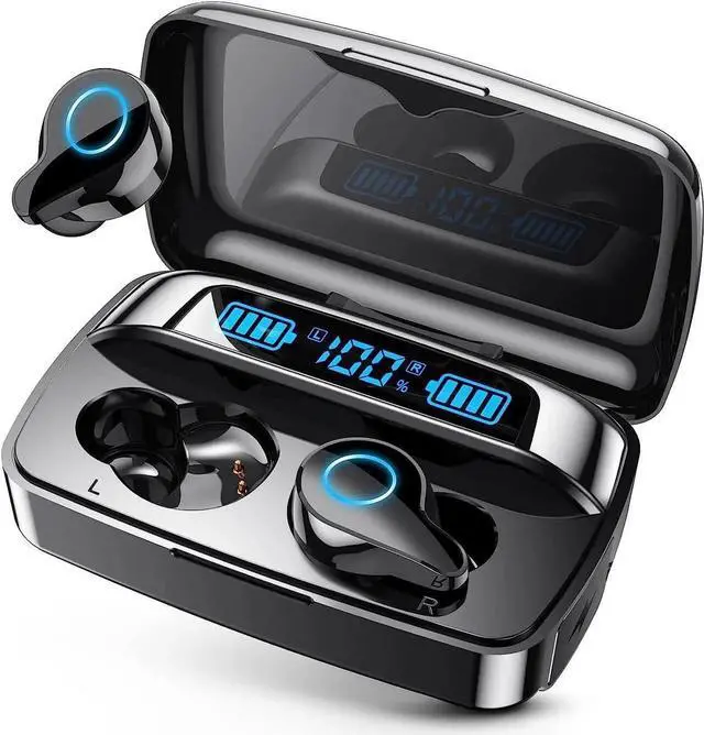 132 Hours of Playtime - LED digital display for easy power management, 1800mAh large Bluetooth headphones charging case provides up to 11 full charges for two 50mAh true wireless earbuds, with 6-8 hours of continuous playback per charge. Up to 132 hours of playtime by alternating the use of wireless headphones.