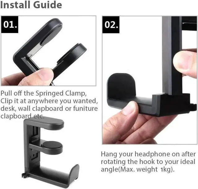 UNIVERSAL UNDER DESK DESIGN clamps on to desks up to 40mm thick and as narrow as 8mm for a near universal fit on most desks || Spring Clamp is easy to remove and reattach! Headphone Hook for birthday gifts