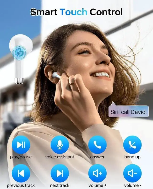 [SMART TOUCH & IPX5 WATERPROOF]: With Smart Touch, you can easily control play/pause, skip to previous/next track, adjust volume, answer/end calls, enable voice assistant and more. In addition, the two earbuds can be used individually or shared with a partner, perfect for safe driving, work, dating, etc. IPX5 rated sweat protection prevents damage to the earbuds from sweat and light raindrops, so you don't have to worry about it, even during intense exercise!