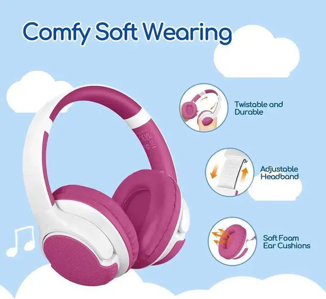40 Hours Playtime & Quick Charging: Offering up to 40 hours of playtime on Bluetooth mode (or unlimited with a wired connection) and a quick 10-minute charge providing 5 hours of use, these headphones are ready to support your childs daily activities without frequent recharging.