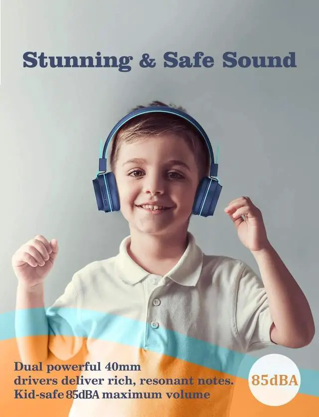 Safe Volume & Colorful Lights: Looks cool, sounds great! To protect kids' hearing, the Kids headphones are limited to an output of 85dB. In addition to the 40mm drivers that deliver full, immersive sound to the iClever kids Bluetooth headphones, they also feature a set of LED lights that run around the edges of the earpiece for an awesome, stylish look.