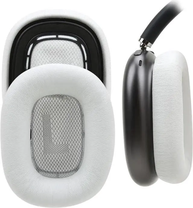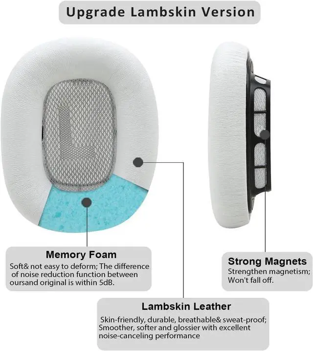Lambskin Ear Pads for AirPods Max Headphones Sheepskin Leather Earpads Replacement with Memory Foam and Magnet Sweat Proof& Excellent Noise Isolation White