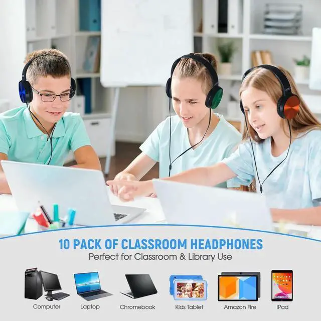 Comfortable & Adjustable Design-The classroom headphones are adjustable for kids to wear, cozy and skin friendly, lightweight and easy to carry, which not easy to fall. In Additi