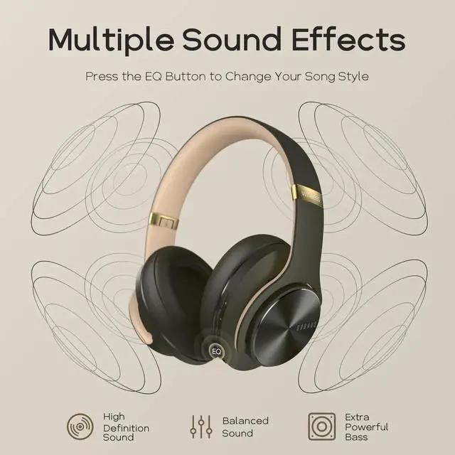 DOQAUS Bluetooth Headphones Over Ear, 90H Playtime Wireless, 3 EQ Modes, HiFi Audio & Deep Bass, ENC Noise Isolating Mic, Soft Earpads for Phone/PC