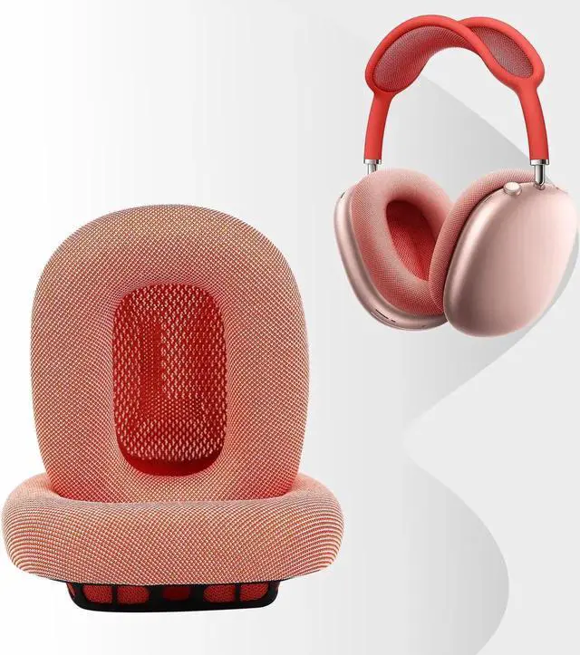 Sinowo Upgraded Ear Cushions for Apple AirPods Max Headphones, Mesh Fabric Replacement Ear Pads Cover with Memory Foam and Magnet, Closer to The Original (Pink)