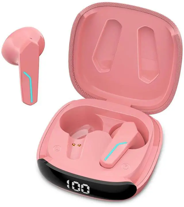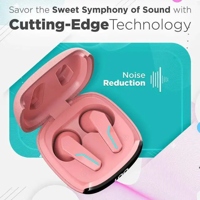 MyJoy Fashion Wireless Earbuds, Bluetooth, Long Range, Comfortable with Mic, Pink