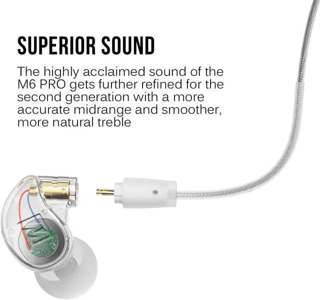 MEE audio M6 PRO In Ear Monitor Headphones for Musicians, 2nd Gen Model With Upgraded Sound, Memory Wire Earhooks & Replaceable Cables, Noise Isolating Professional Earbuds, 2 Cords Included (Clear)