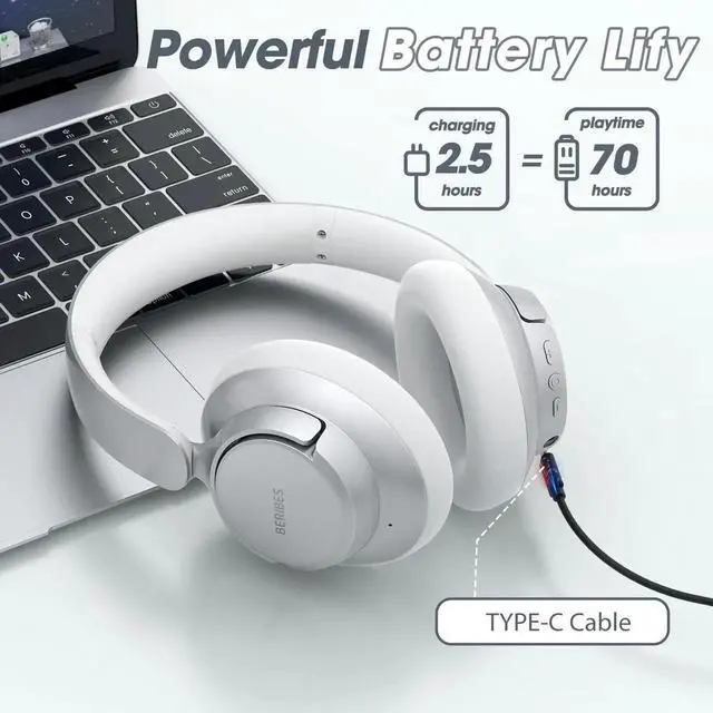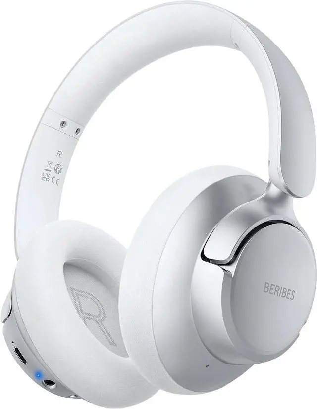 BERIBES Upgraded Hybrid Active Noise Cancelling Wireless Headphones with Transparent Modes, 70H Playtime Bluetooth Headphones Wireless with Mic, Deep Bass, 3.5MM Cable, Soft-Earpads, Fast Charging-Silver