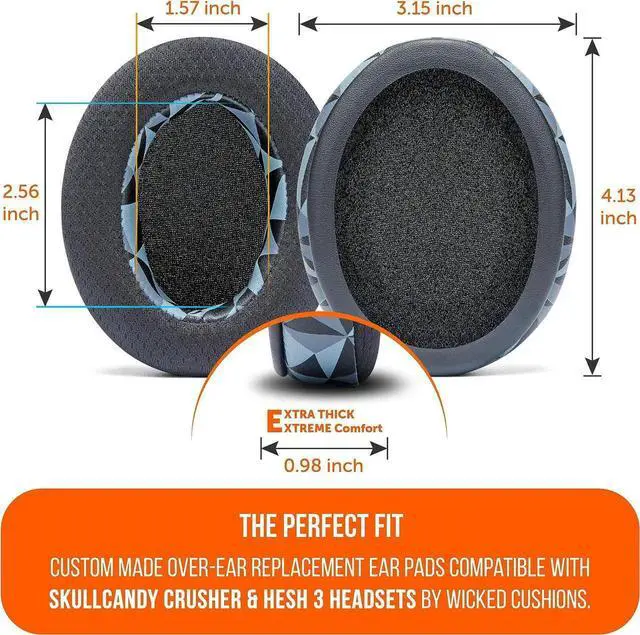 WC Freeze Crusher - Cooling Gel Earpads Compatible with Skullcandy Crusher, by Wicked Cushions - Fits Skullcandy Crusher & Hesh 3 Headphones, Soft Memory Foam, Cooler for Longer ^^ Geo Grey
