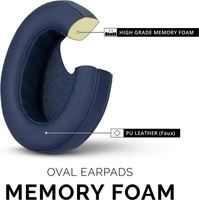 Brainwavz Replacement Memory Foam Earpads for Large Over The Ear Headphones, Dark Blue