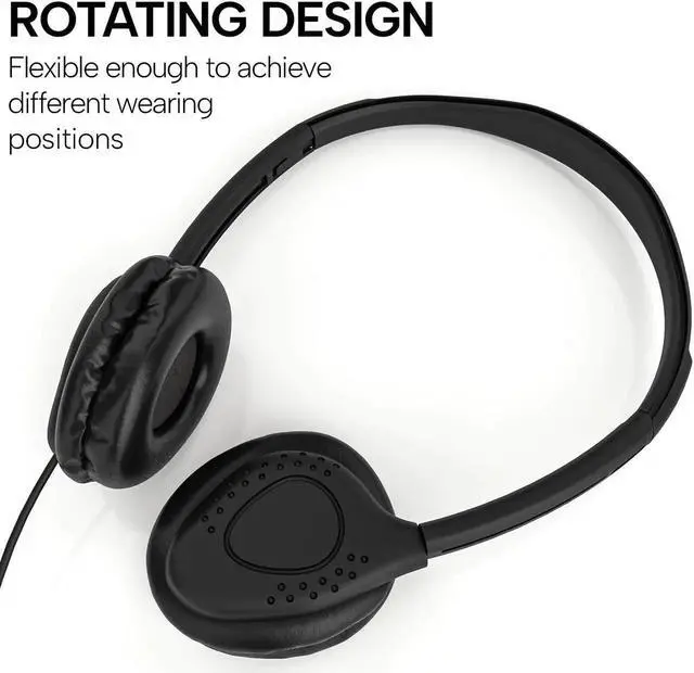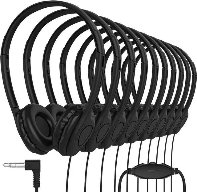 Maeline Bulk 10 Pack Stereo Headphones with in-Line Volume Control, Wired On-Ear Headphones with Soft Earpads for Classroom, Student Online Learning, Library, School, Museum, Travel - 3.5 mm - Black