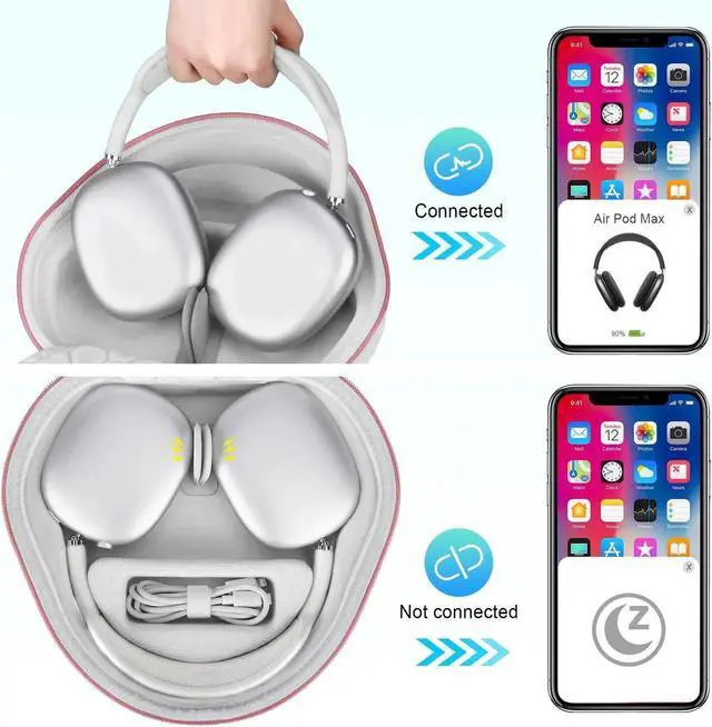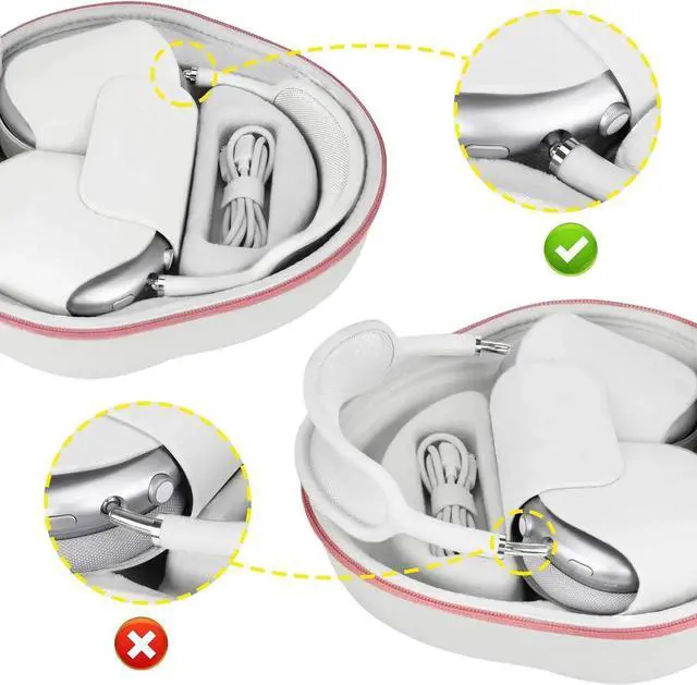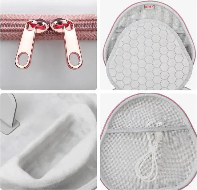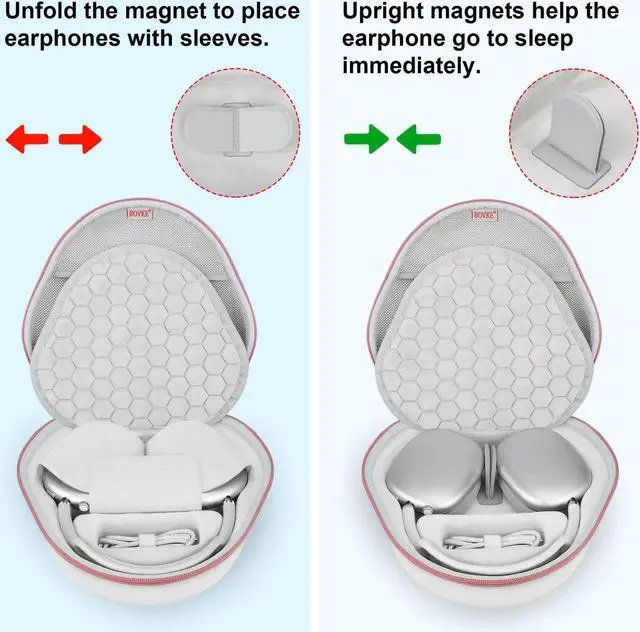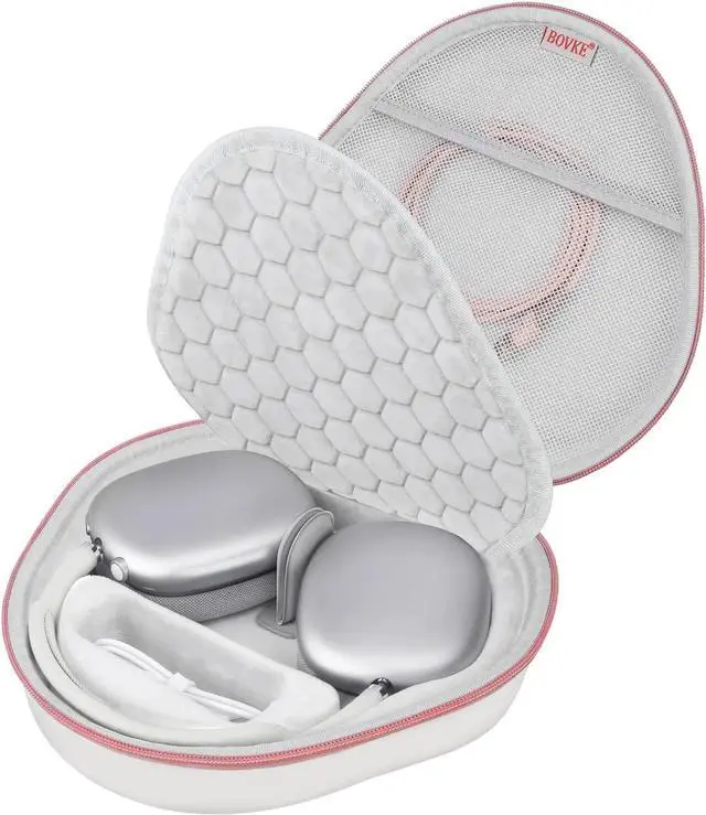 BOVKE Hard Carrying Case with Sleep Mode for Apple AirPods Max Wireless Over-Ear Headphones, AirPods Max Protective Portable Storage Bag with Mesh Pocket for Headphone Accessories, White Rosegold
