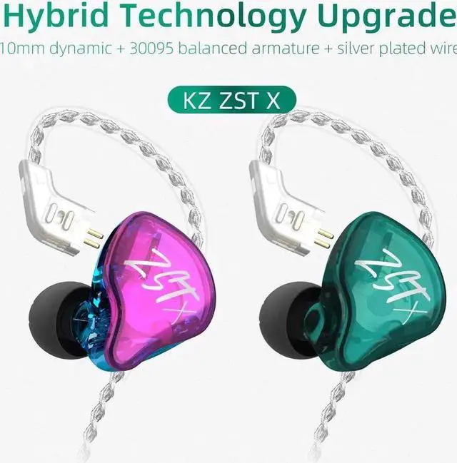 KZ ZST X in Ear Earphone 1BA 1DD Dual Driver Wired Earbuds Headphone HiFi Ergonomic Gaming Earbuds with 2 Pin Detachable Cable for Singer Audiophile DJ