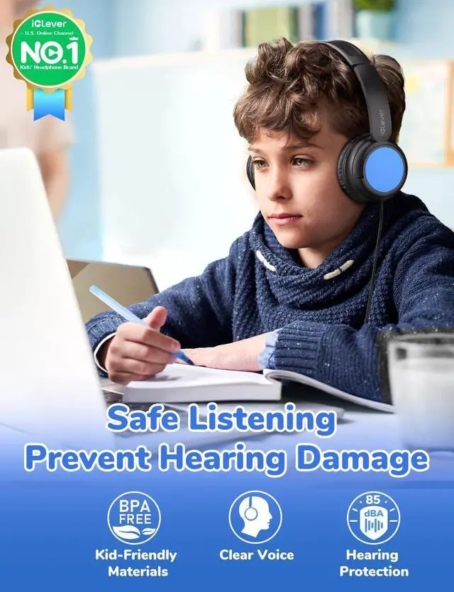 Safe Sound Refiner TechThese headphones are equipped with iClever Sound Refiner technology, which effectively limits the sound to below 85dBA and reduces the high-frequency (2-4KHz) volume that can cause hearing damage. For ultimate safety, these headphones are made from child-safe and friendly materials that are CPC-certified and do not contain BPA, ensuring they are gentle on children' s skin.