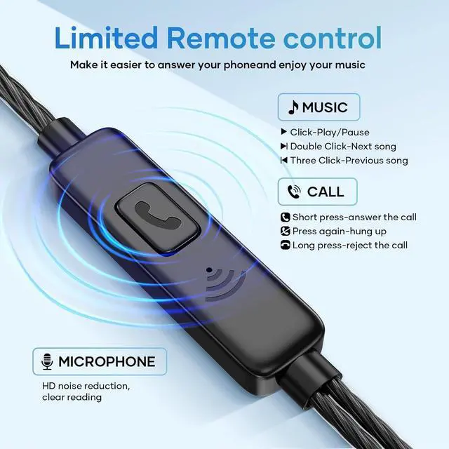 Built-in Mic & Multi-function Button: Earbuds with wired Built-in HD performance microphone make calls clearer, one-button remote control allows you to answer/hang up/play/pause/next track/previous track without picking up the phone. Free your hands when you listen to music or make calls while driving, exercising, working, etc