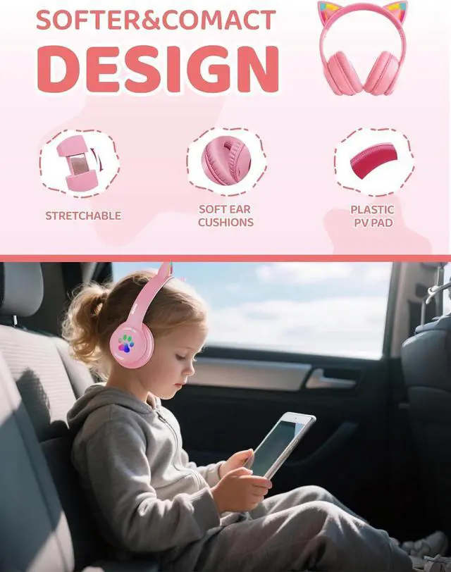 Led Light Cat Ear Headphones: 8hrs-with RGB light) for 60 hrs (with RGB light) playtime Bluetooth headphones(hands-free calling) /Or Aux-in. It can listen anytime in both a wired and wireless capacity. The wireless design is handy for avoiding tangles, and this cord is detachable.